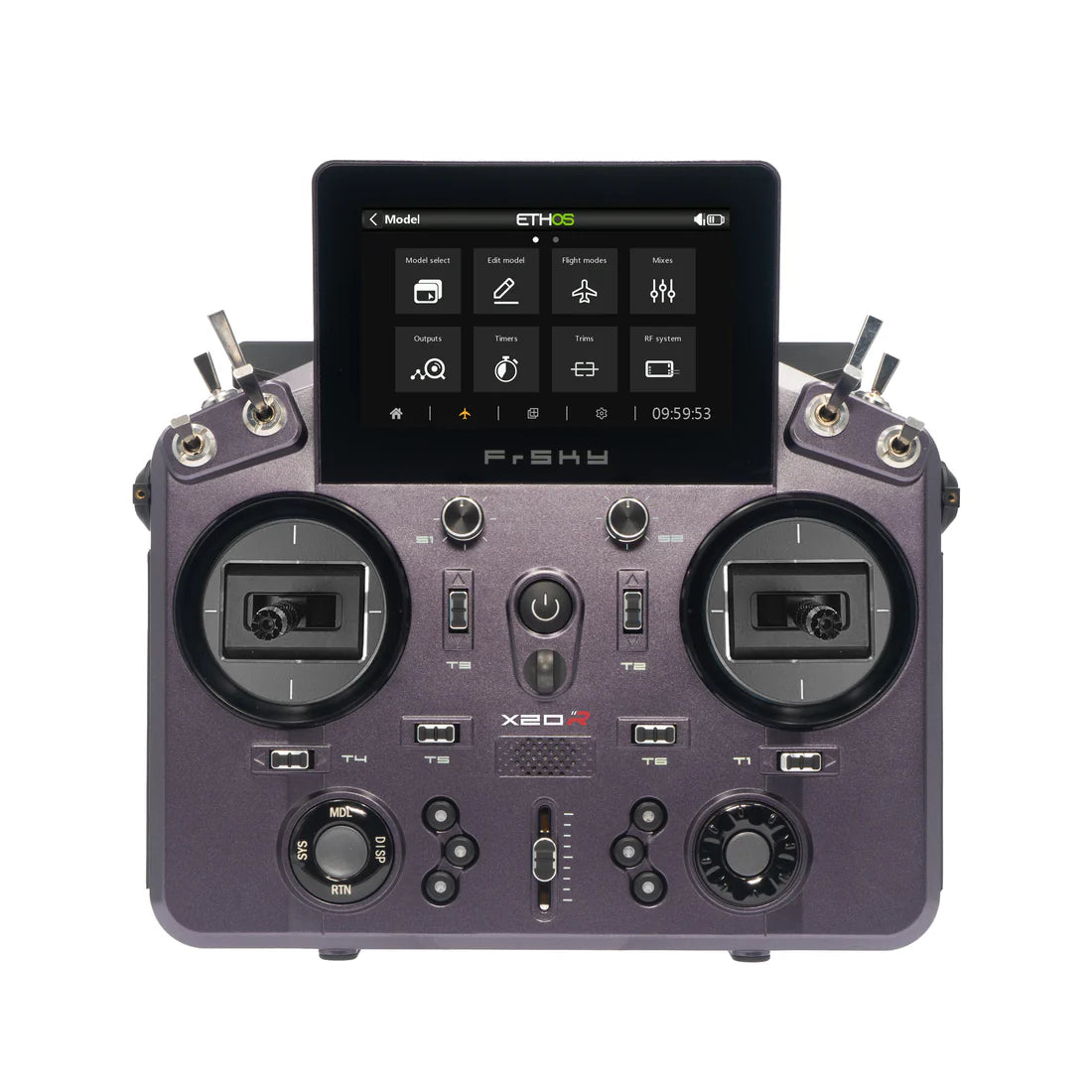 R and RS versions add 2 extra trims, allowing for more precise tunings during the operations. The slider levers on both sides of the transmitter support adjusting the positioning of the center, catering to different users’ habits and preferences. The primary input components, including trim caps, center-slider caps, and knobs are all made from metal, offering rugged quality and enhanced durability for outdoor use.
