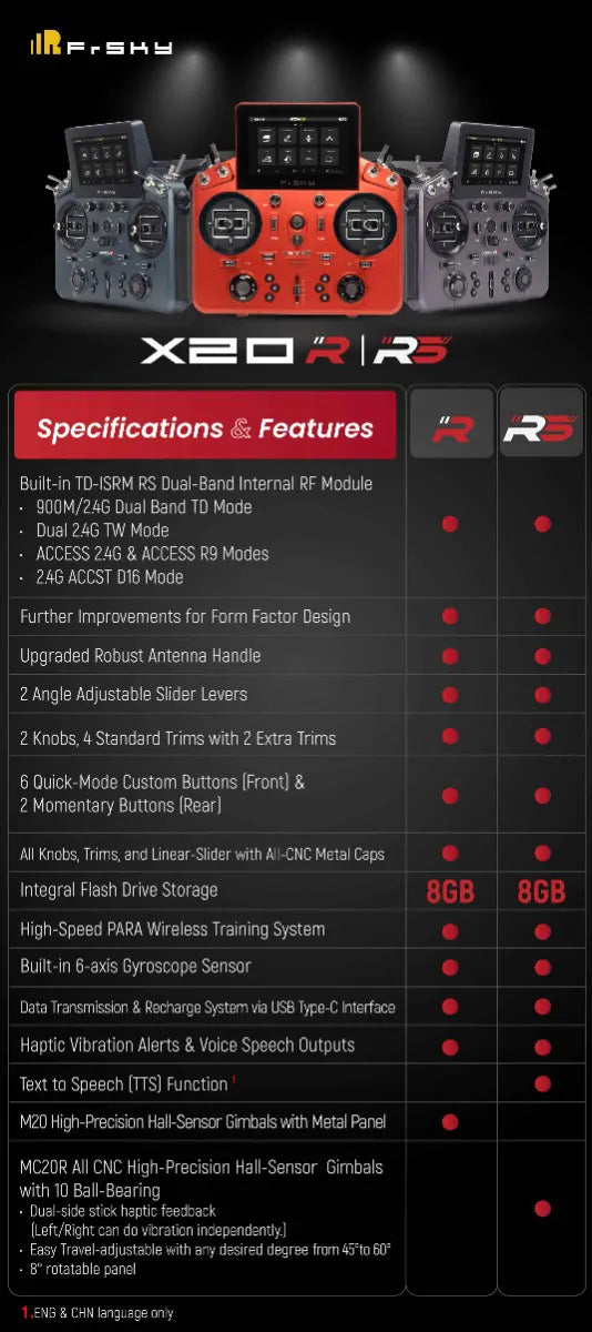 With solid performance based on the dual-band 900M/2.4G RF signal link with multiple operating combinations of RF modes, the TANDEM X20R & X20RS versions are equipped with the TD-ISRM RS built-in RF module which is capable of supporting multiple protocols (like TW, TD, etc).