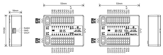 The RB-25/RB-25S also works as an extensive sensor module with various built-in sensors including diversified telemetry. The RB-25S also includes the high-precision telemetry sensor for monitoring altitude, vertical speed, etc. can be also used as an alternative to using a GR or S series receiver.